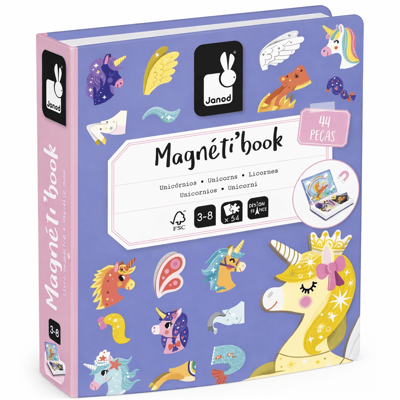 O Livro Magnético Unicórnio 40 Peças Janod é uma maneira criativa, divertida e educativa de entreter as crianças! Com peças magnéticas coloridas e encaixes temáticos de unicórnios, este livro proporciona momentos de imaginação, desenvolve a coordenação motora fina e estimula a concentração. Ideal para crianças em fase de descobertas, é perfeito para brincadeiras em casa, viagens ou momentos de aprendizagem lúdica.